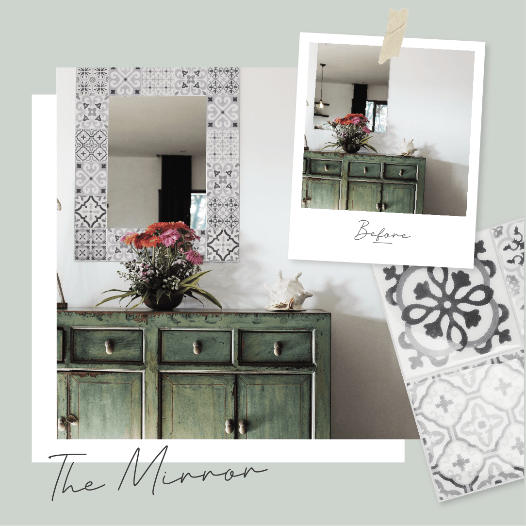 ایندفعه برای انتخاب قاب آینه کمی خلاقیت خرج کنید و از کاشیهای طرح دار دور تا دور آینه استفاده کنید. و از نتیجه ی جذاب آن شگفت زده شوید.