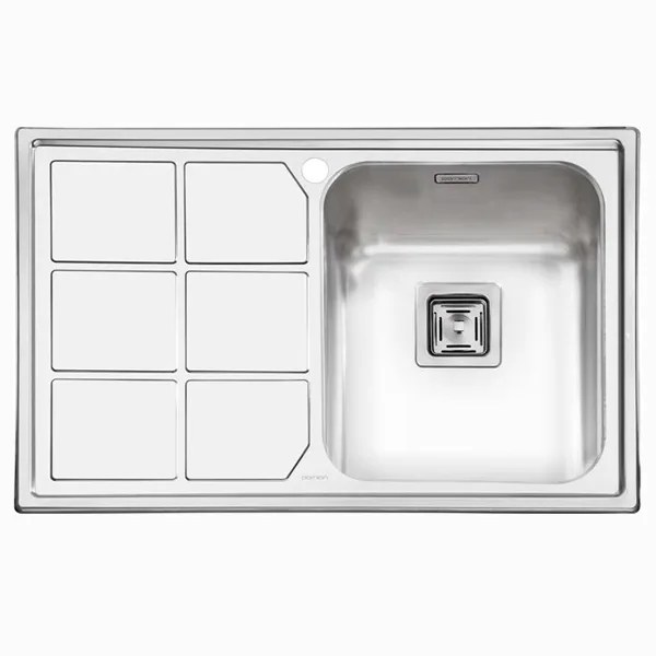 سینک 1218 توکار پرنیان که نوع سینک :فانتزی توکار،نوع لگن : باکس،زاویه لگن : R 60،داراى نوار آبندى PU ، عایق صدا و بست با کیفیت و استفاده از استیل 10 – 18 ضد زنگ را دارا می باشد.