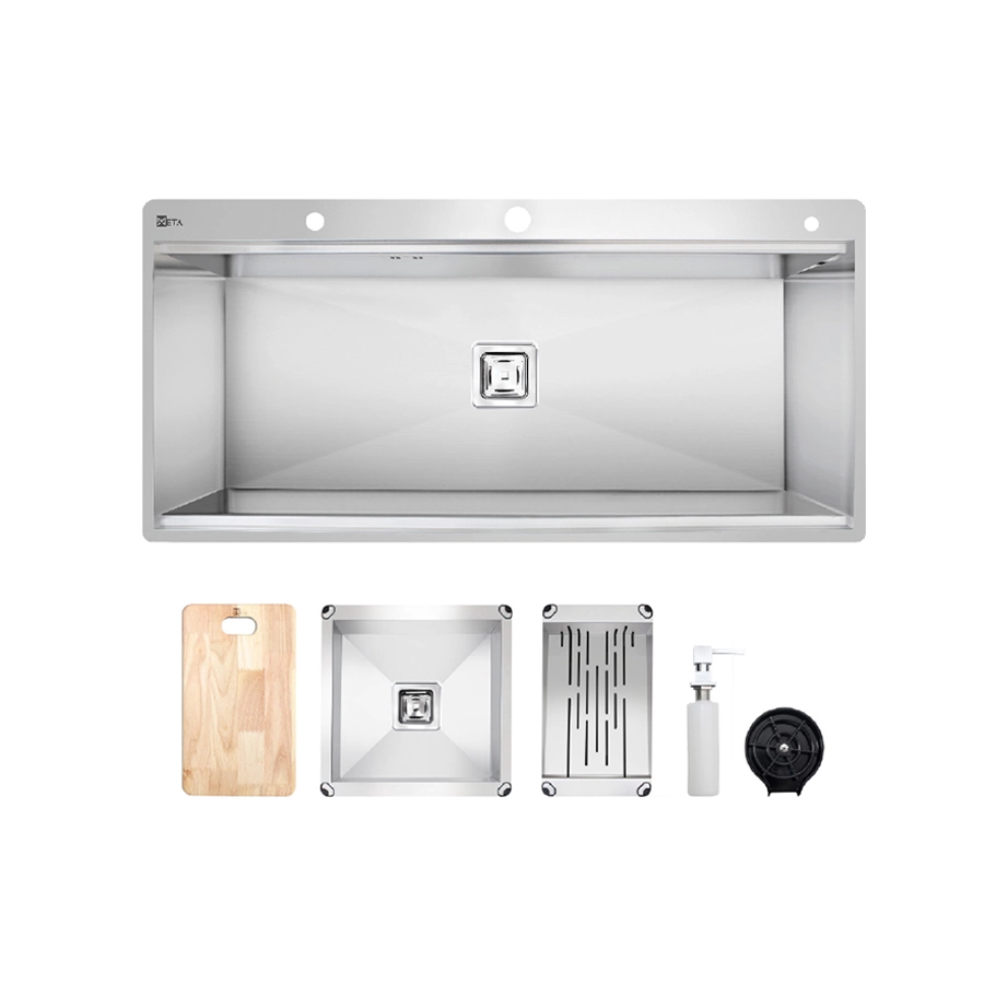سینک ظرفشویی متا مدل پله دار با ظرافت منحصر به فرد، طراحی شیک، بدنه تمام استیل ضد زنگ و اکسسوری های کامل، یک انتخاب عالی برای طرفداران سینک های مینمال با طراحی اروپایی است. این محصول دارای لگن متحرک، جامایع تووکار، میوه شور و تخته گوشت چوبی و لیوان شور است.از مهمترین مشخصات این محصول، متناسب بودن با انواع سبک دکوراسیون ها، طراحی جذاب، بدنه مقاوم و اکسسوری های متنوع است. سینک پله دار متا با یک لگن جادار و شیب جزئی برای زهکشی سریع آب داخل لگن طراحی شده است. صافی سیفون برای جلوگیری از مسدود شدن مسیر فاضلاب با مواد غذایی، جنس بدنه مستحکم و روکش مقاوم به لکه های ناشی از قطرات آب، شوینده و وایتکس از دیگر مشخصات سینک پله دار متا است.