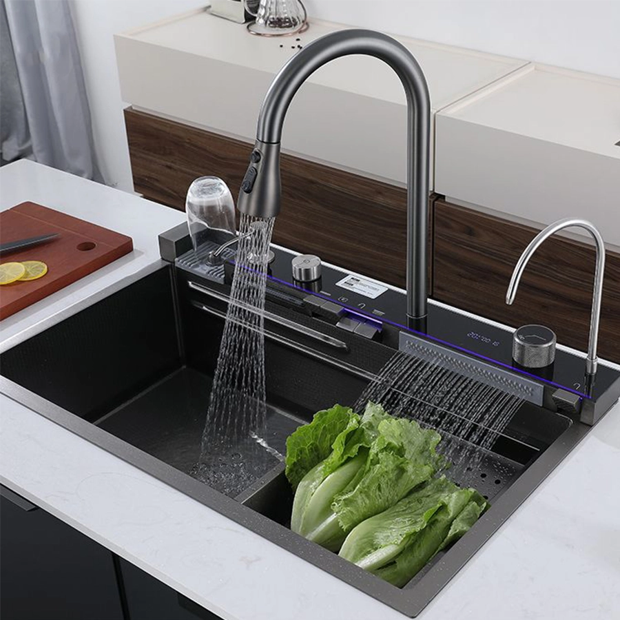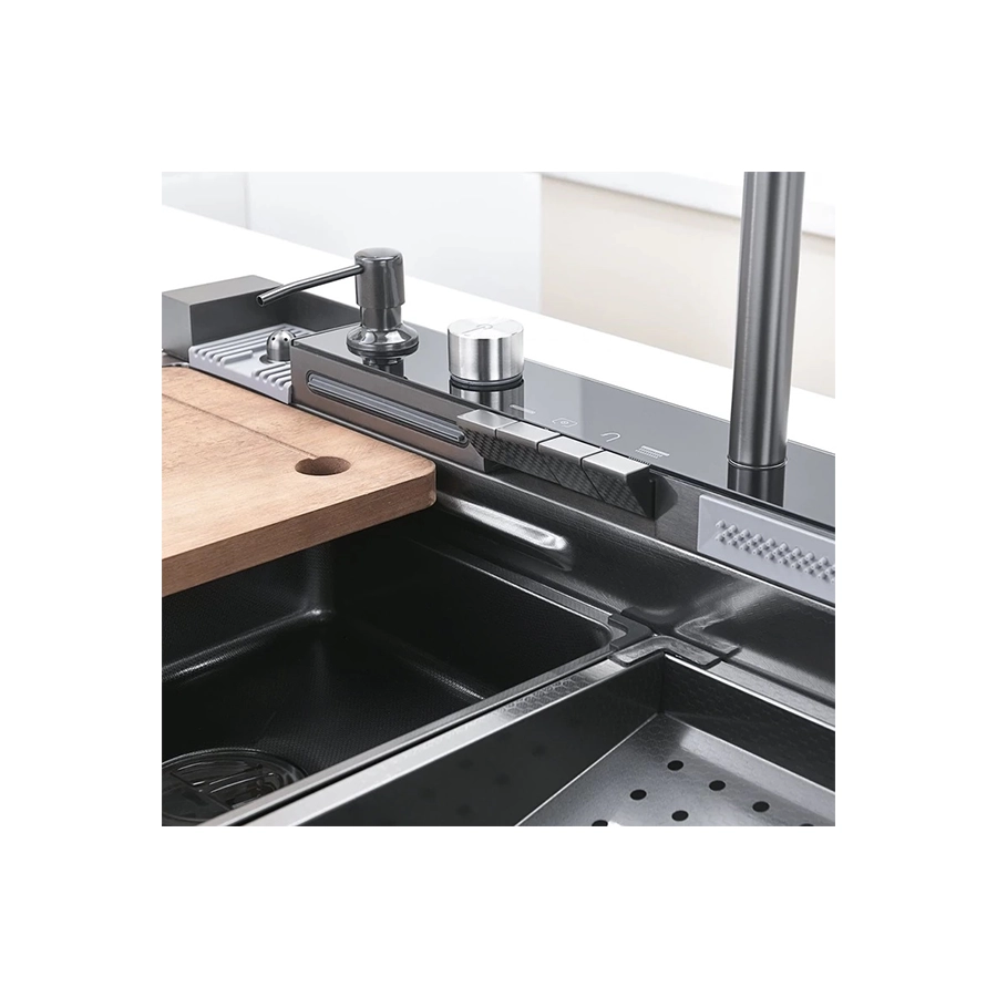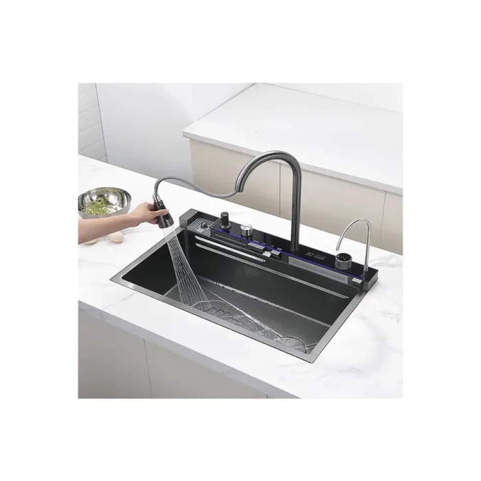 این محصول نیز به عنوان یک محصول با بسیاری امکانات پیشرفته خصوصا در شستشوی ظرف ها کار رو برای بسیاری از خانه دارها راحت میکنه. این محصول بروز و ظهور تکنولوژی در منزل شما خواهد بود. نمایشگر LED سینک پیانویی ۵ کلید دارای نشانگر درجه حرارت آب و همچنین تایرمر باز بودن آب است. جنس لگن این سینک استیل ۳۰۴ میباشد. ابعاد لگن ۷۵ در ۴۶ میباشد. همچنین این لگن ضد خش ( لانه زنبوری ) میباشد. این محصول قرار هست ک در جشنواره فروش عیدانه 1403 شرکت کارینا با قیمت تخفیفی مناسبی بفروش برسه. همچنین قابل ذکر هست شرکت کارینا به عنوان نمایندگی انحصاری این محصول فعالیت میکنه.